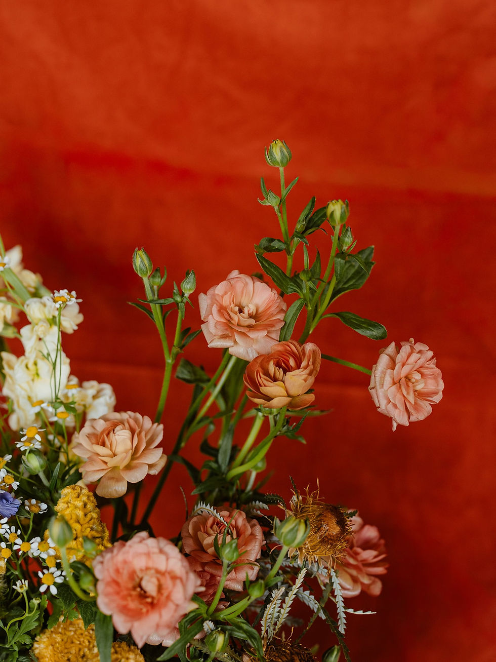 Exploring 70s Color Play and Textures in Floral Creations with Jo Mcowan Wedding Photography